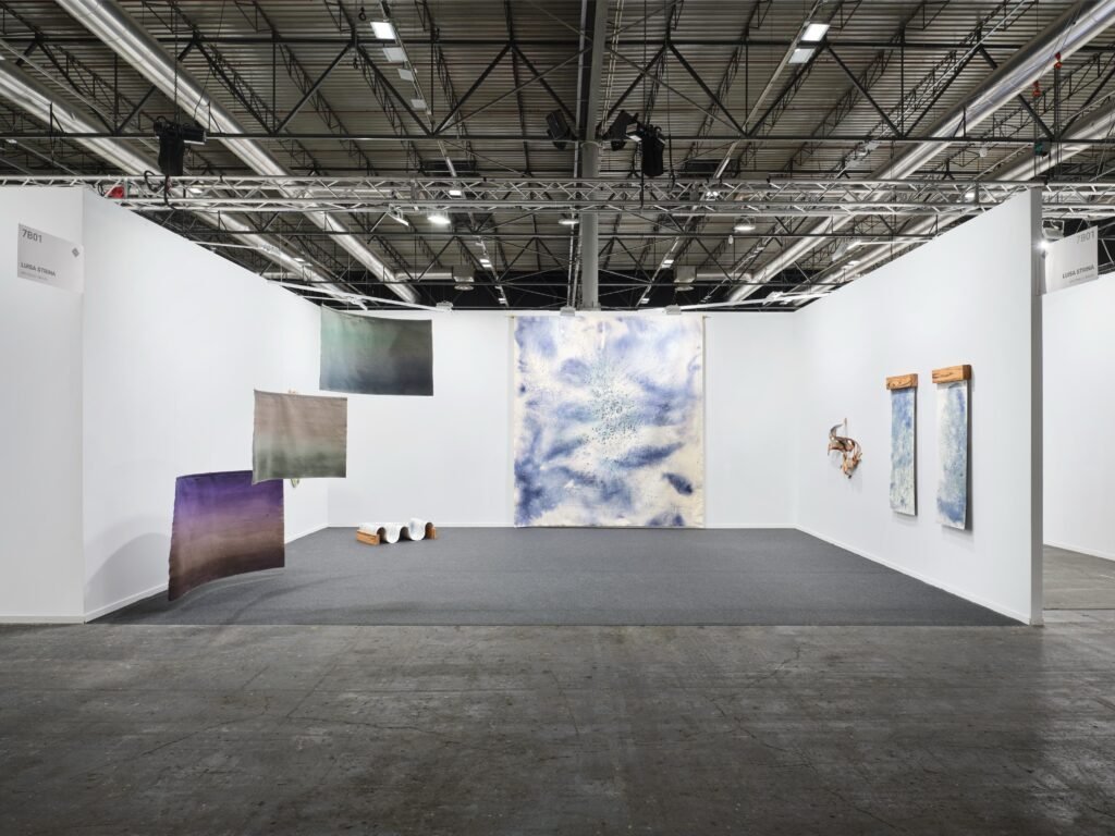 The Galeria Luisa Strina participates with Semear a água: quem tem medo da paisagem, a solo presentation by Juliana dos Santos. The presentation coincides with a period of significant institutional visibility for the artist. In 2025–2026, dos Santos presented Temporã, her first solo museum exhibition, at the Pinacoteca de São Paulo, on view through March 2026. Developed from an artistic residency, the exhibition centers on the transformation of natural pigments derived from the Clitoria ternatea flower, a key material in her practice. In 2025 the artist also participated in the 36th São Paulo Biennial. Her recent institutional presence also includes participation in the group exhibition Trovoada, presented at Galpão das Artes, in Jardim Botânico, Rio de Janeiro, from January to February 2026.