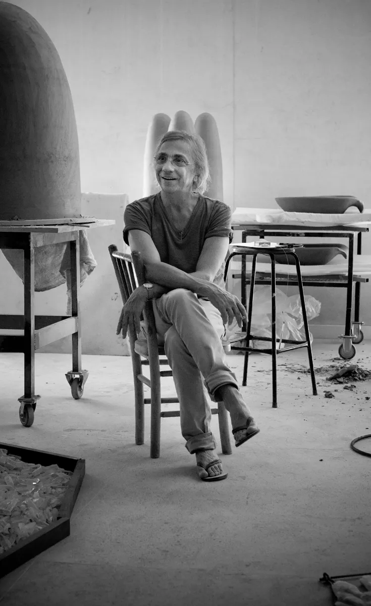 Tunga (1952–2016), born Antônio José de Barros Carvalho e Mello Mourão in Palmares, Brazil, was a pioneering figure in contemporary Brazilian art, renowned for his multidisciplinary practice encompassing sculpture, installation, performance, and drawing. His work delved into themes of transformation, alchemy, and the subconscious, often utilizing unconventional materials such as iron chains, glass, magnets, and human hair to create immersive, symbolic environments. Notable works like Xifópagas Capilares entre Nós (1984) and True Rouge (1997) exemplify his exploration of duality, desire, and ritual. In 2005, Tunga became the first contemporary artist to exhibit at the Louvre Museum in Paris with his installation "À la Lumière des Deux Mondes" . His art has been showcased in major international exhibitions, including Documenta X and multiple editions of the Venice and São Paulo Biennales, and is held in esteemed collections such as MoMA in New York and Tate Modern in London. Instituto Inhotim in Brazil houses two permanent pavilions dedicated to his work, cementing his legacy as a transformative force in contemporary art.