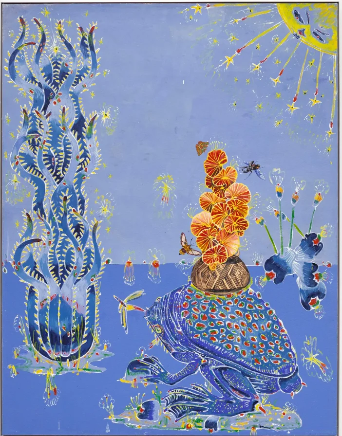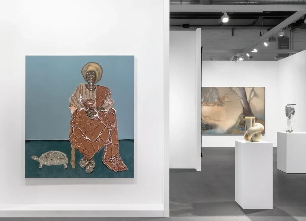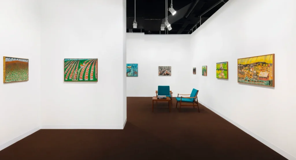 At David Kordansky’s booth, Brazilian artist Chico da Silva is featured with his vibrant, fantastical compositions inspired by Amazonian myths and nature. A self-taught artist of Indigenous heritage, Chico developed a unique visual language blending folklore and imagination. His inclusion reflects the growing international recognition of his work and the gallery’s focus on expanding the global art narrative.