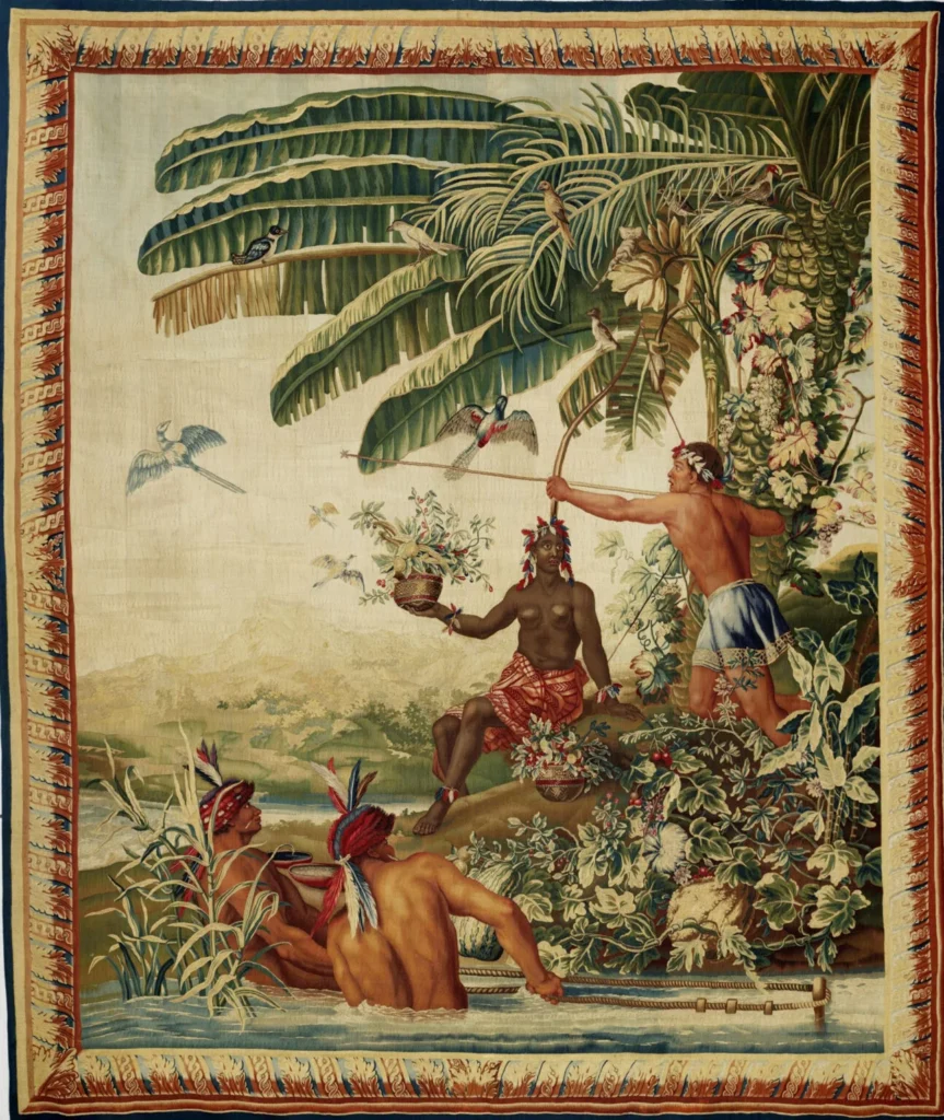 At the Manufacture des Gobelins in Paris, for example, the production of a series of tapestriescommissioned to adorn royal residences reflected a growing fascination with non-European subjectsand styles. More than mere decorative objects, these works captured aspects of the colonial worldand played an active role in constructing an imperial visual language. They became part of the officialiconography of European overseas expansion, subtly reinforcing colonial ideologies.