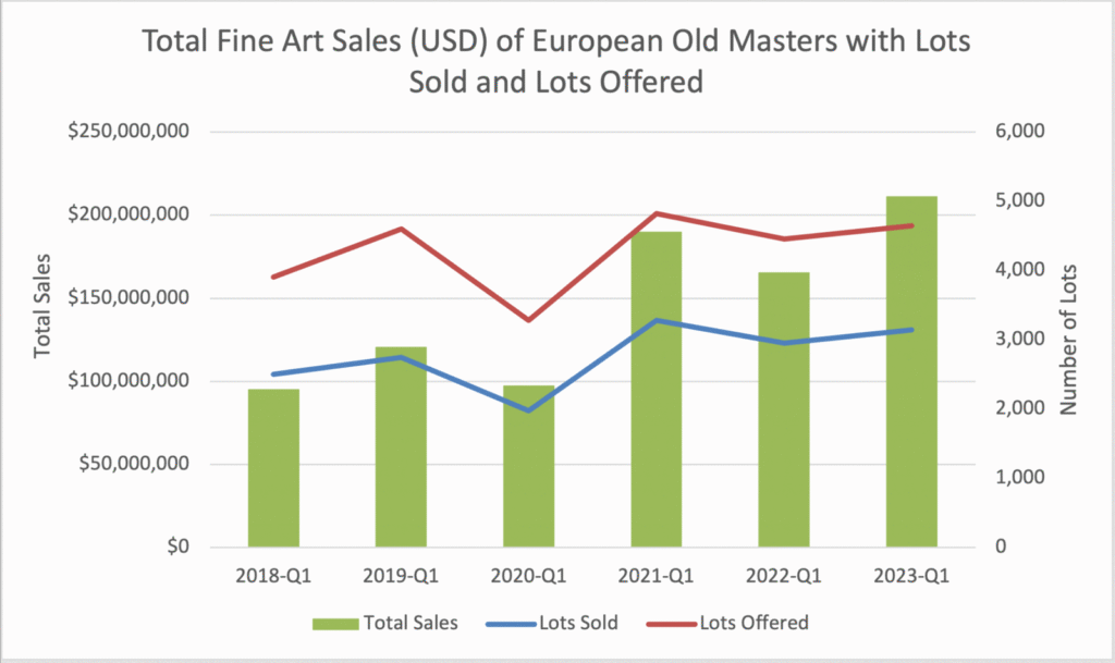 The year 2022 represented a record for Old Masters sales over the last 5 years, reaching $691.8 M.