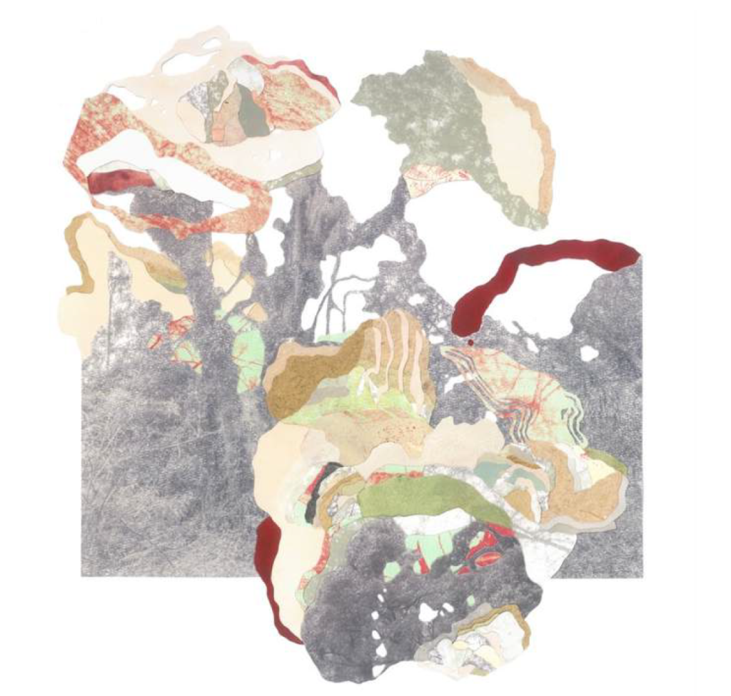 Rice paddy paper, banana paper, washi paper, gouache paint, acrylic paint, screen-printing, graphite, photographs printed on acid free paper