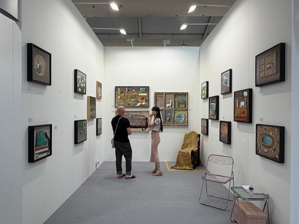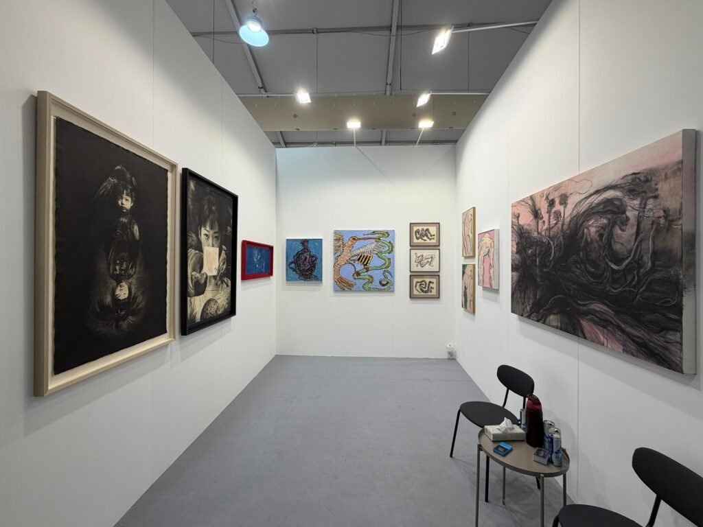 The gallery presents a dual focus bringing together works by Aharimu and Cecil Mariani, highlighting two distinct yet complementary directions within Indonesia’s contemporary art scene. The booth articulates a dialogue between painterly intensity and research-driven practices, reflecting the diversity and vitality of emerging voices from the region.