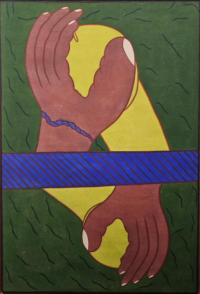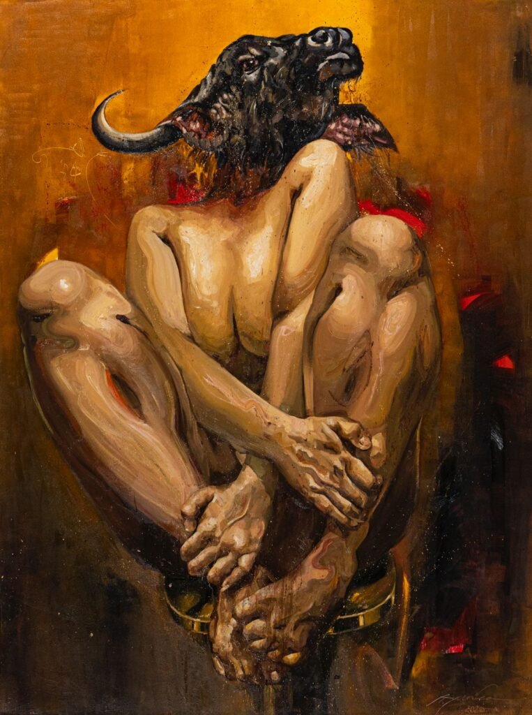 In parallel, Ayurika’s work unfolds through a more symbolic and introspective language, often engaging with themes of identity, femininity, and emotional states. Her practice navigates between painting and illustrative forms, where delicate textures and refined compositions give shape to intimate narratives. Through subtle yet evocative imagery, Ayurika creates works that resonate on both personal and collective levels, positioning her practice within a broader reflection on contemporary subjectivities.