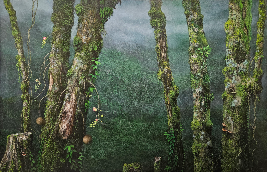 This trajectory is further reinforced by his recent participation in institutional group exhibitions across Asia. At the Busan Museum of Contemporary Art, he is included in The Rhinoceros and the Unicorn, a project that reinterprets traditional folktales through largely wordless visual narratives, inviting viewers to construct meaning beyond fixed endings. In Shanghai, Jumaadi takes part in Down to Earth at TANK Shanghai, a curatorial initiative emerging from the TANK Curator Prize that reconsiders human relationships with land, ecology, and interspecies connection. In addition, the artist had the work Upside-Down Garden commissioned for Barangaroo in Australia.