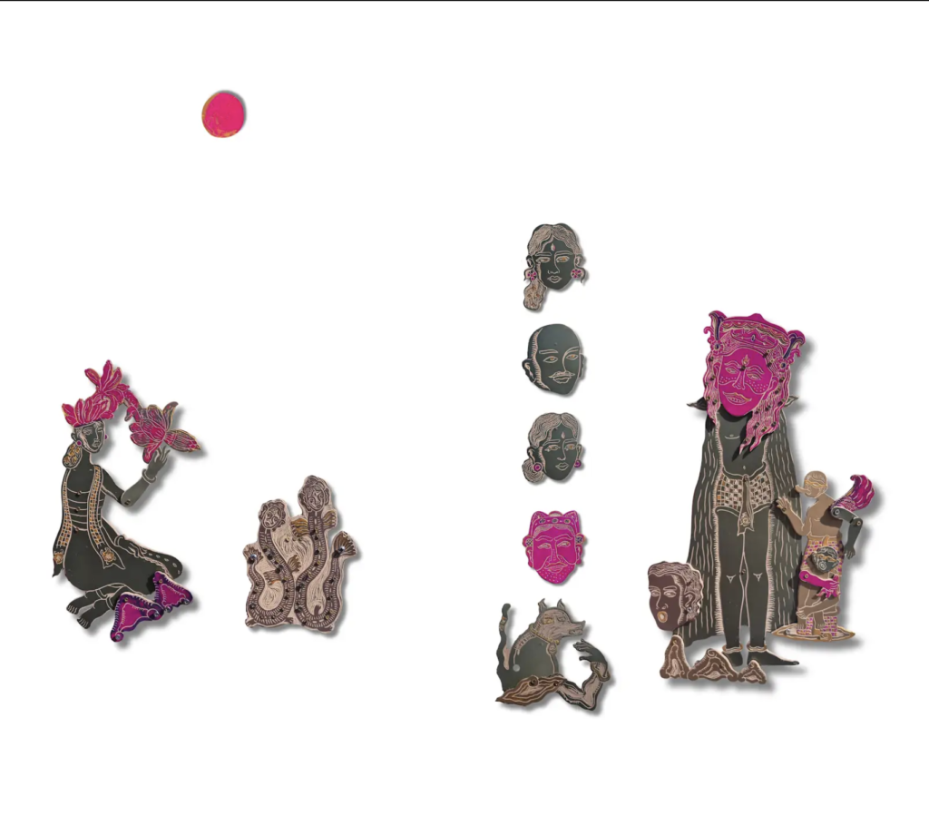 Ni Luh Pangestu reimagines the figures of Kamasan, traditional characters from shadow theater, using leather. She offers alternative perspectives on the sociocultural traditions of our time, with the aim of preserving, and at times challenging, the values and norms that define our societies.
